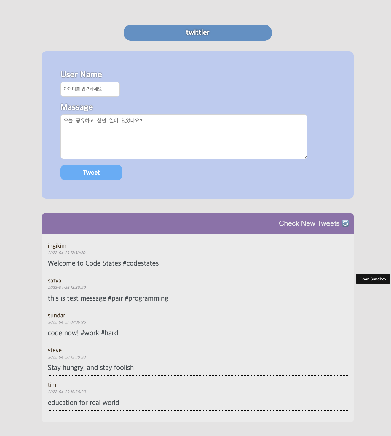 프로그래밍 목표는 Twittler Mockup 사이트 만들기 였다.